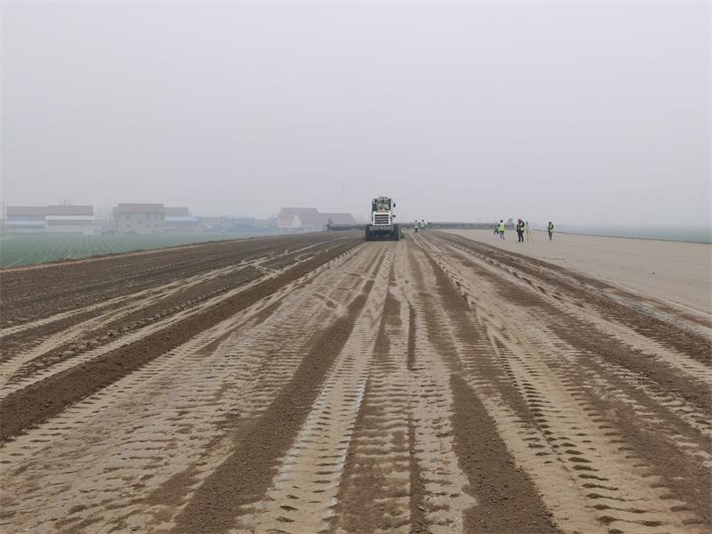 此次全幅第一層4%水泥土施工按照“三階段、四區(qū)段、八流程”施工工藝進行,共計投入人員20余名,機械設(shè)備10余臺,全體參建人員團結(jié)協(xié)作、相互配合,各項施工工作有序開展。