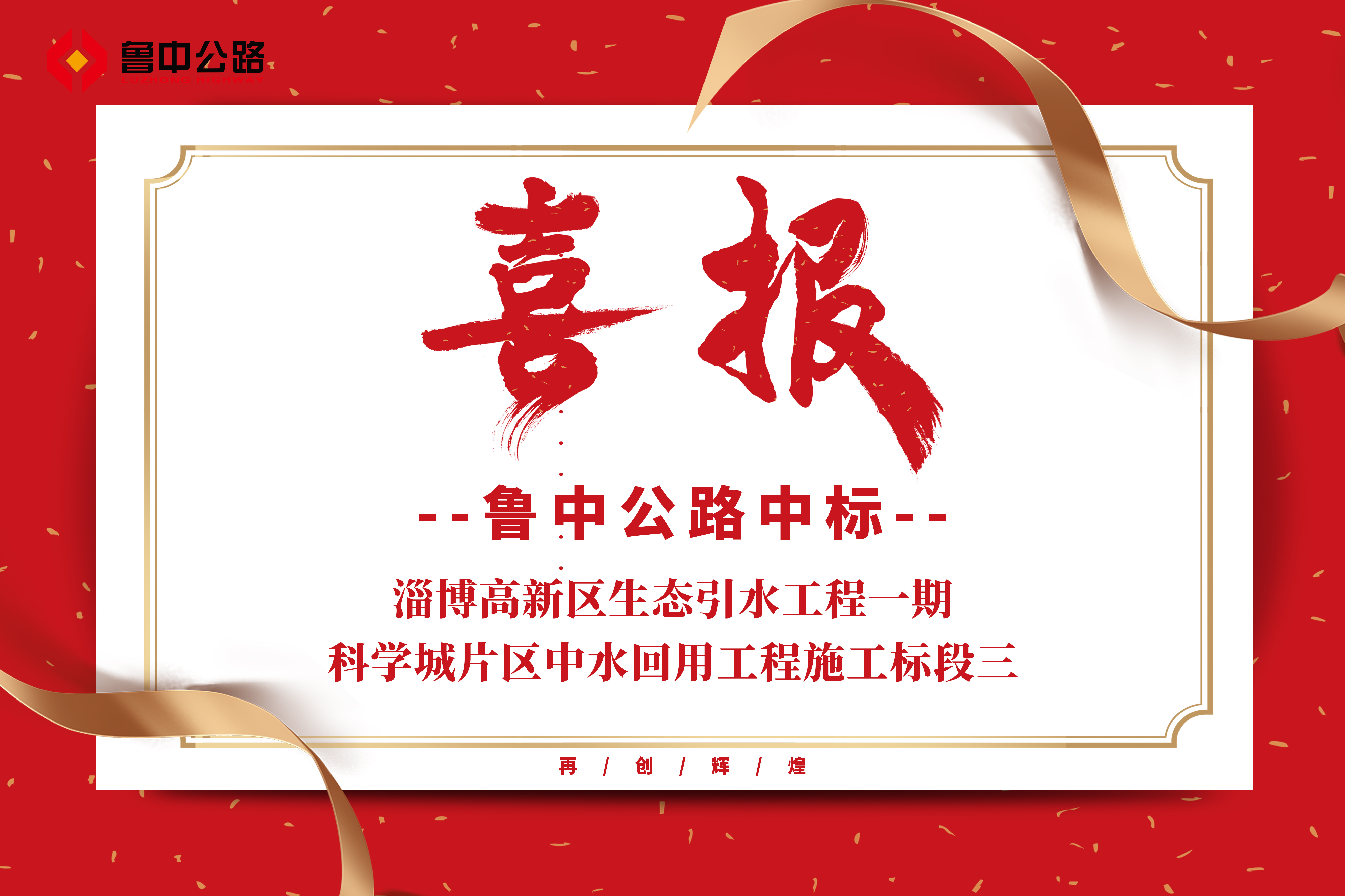 近日,公司收到中標通知書,中標淄博高新區(qū)生態(tài)引水工程一期—科學城片區(qū)中水回用工程施工標段三。