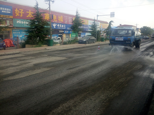 銑刨完成后灑水除塵