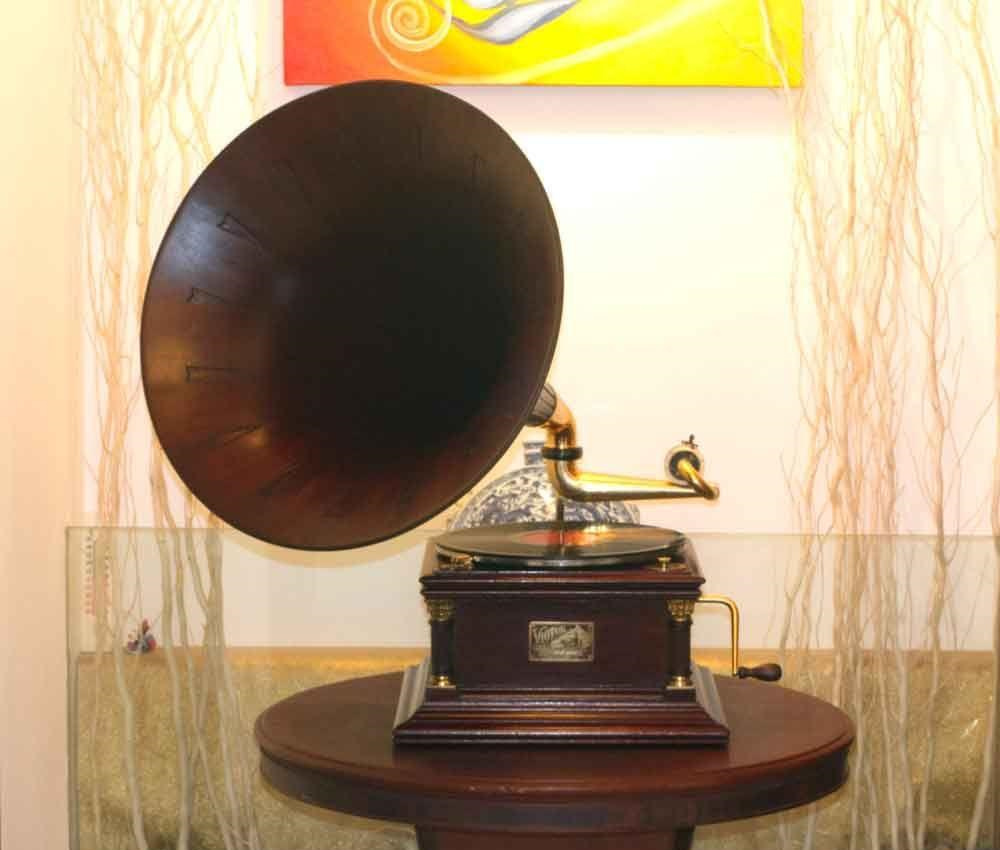 由于酷愛京劇,一年幾次的演出,根本滿足不了父親酷愛京劇的欲望,所以就想到了當時非常時尚的留聲機。那個年代想買個留聲機,是個想也不敢想的事。當時父親是橫下了一條心,首先要過娘的這一關(guān),他是忍受了娘不住的埋怨,又想盡一切辦法在朋友中湊錢。父親是個從不愿張口向人借錢的人,這次破例得到了朋友的幫助,把錢湊齊了。最終把留聲機搬回了家。用父親的話說:"我把四大名旦請回家了,還怕沒戲聽啊"!就這樣留聲機從此就住進了我們的家。留聲機像一位尊貴的客人,它的"地位"是顯赫的,(放在我們房間里最顯眼的地方),它有非常華麗的"服裝",(黑褐色的留聲機的盒子上蓋著一塊紅綢大方巾),旁邊放著一個比它高一點的放唱片的盒子,是那么的厚重,大氣。從此我們家每個晚上都是高朋滿坐,留聲機是主角兒,我父親與留聲機永遠是默契的搭當。過了一段時間,來聽戲的人越來越多,屋子坐不下了,于是就轉(zhuǎn)到院子里,再后來留聲機走出了家門,走出了村莊,遠近幾個村莊,哪家有個喜事,我父親與留聲機必到,留聲機成了一個流動的小舞臺,它承載了父親的榮耀與快樂!