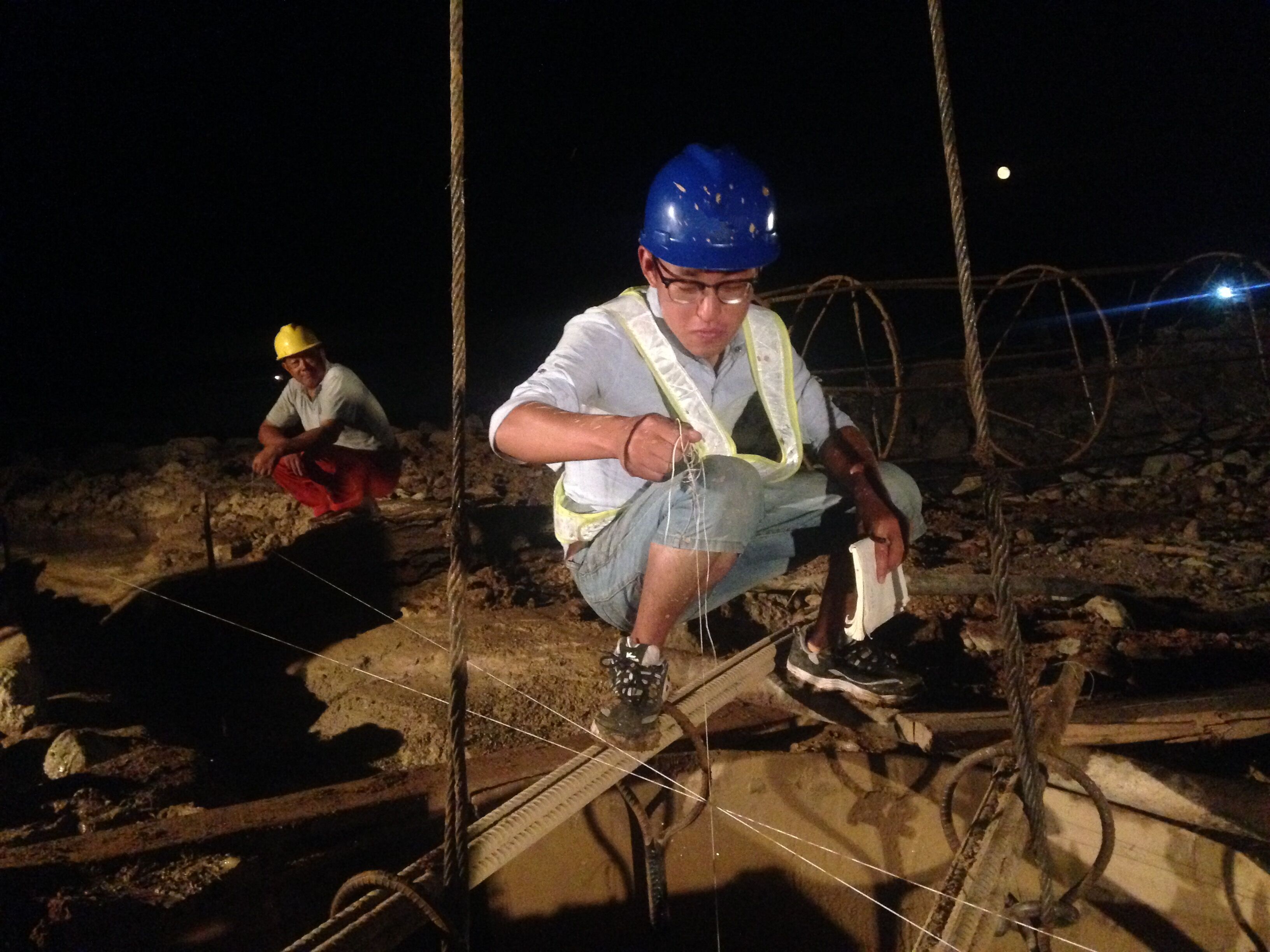 王立超正在進行混凝土澆筑的觀測工作
