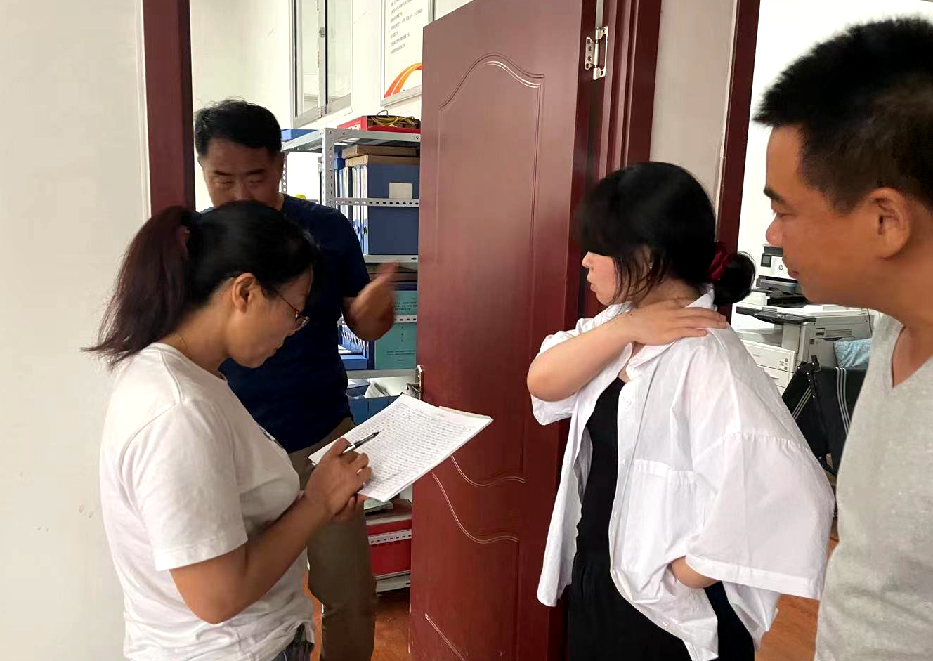 6月30日上午高溫酷熱難耐,盤點人員揮汗如雨,自東向西采取地毯式清點公司院內周轉物資,然后逐室清點辦公室內所有物品。下午頂狂風冒急雨深入現場對項目露天堆放庫存物資,項目辦公設備,生產生活物資等逐一進行清點核對。大到拌合站,小到錄音筆無不是有就必見實物,所有盤點物品一一清清楚楚記錄在案。