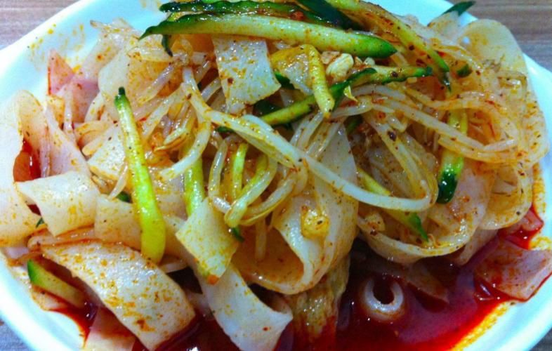 其實涼面有很多種口味,吃法不盡相同,都是涼著吃,因為有的涼面要過道涼水也叫過水面,比較有名的東北延吉朝鮮族冷面,配上牛肉、辣白菜、熟雞蛋,好吃又解饞別有一番滋味。四川的雞絲涼面,配上雞肉絲、四川辣醬,麻辣鮮香,吃到嘴里巴適得很。陜西聞名的寶雞搟皮,秦鎮(zhèn)米皮放上加了芝麻的油潑辣椒和香醋,面黃、油紅看著就食欲大增。西安的麻醬涼皮,新疆的釀皮子,廣東的米粉,也都是各地夏天度夏的涼面品種。四川廣元的蒸涼面更是聞名遐邇,據(jù)說是中國歷史上的第一個女皇武則天家鄉(xiāng)人夏天的最愛。