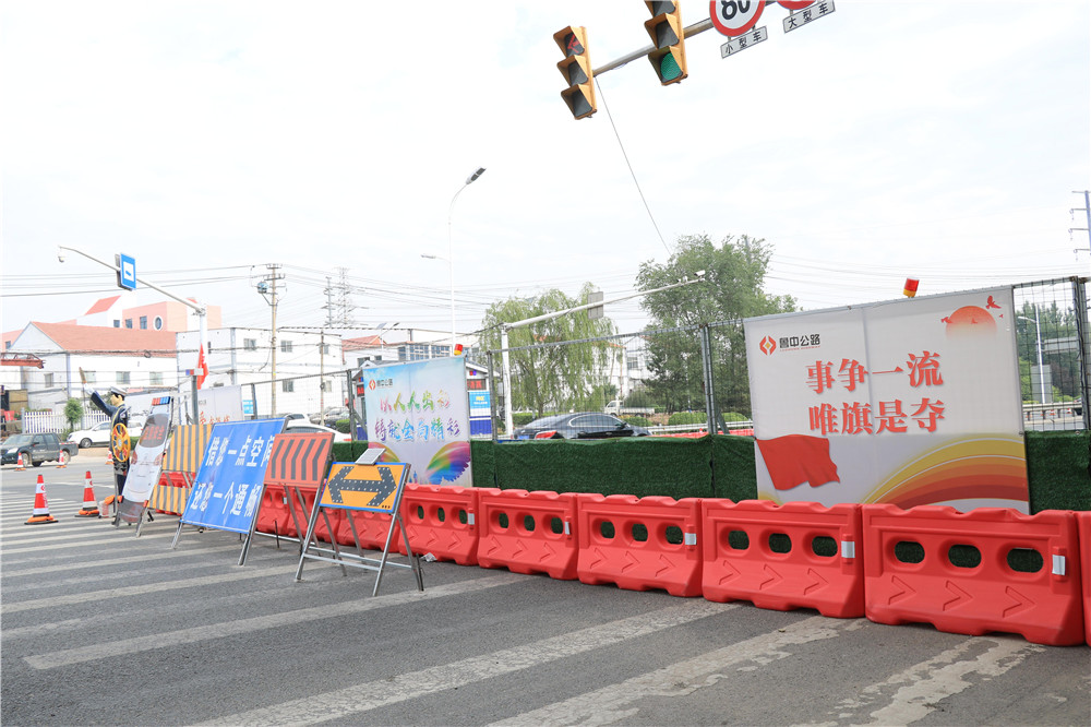 G205項(xiàng)目車(chē)流量大、交通形式復(fù)雜,交通組織是工程實(shí)施期間的頭等大事。項(xiàng)目部嚴(yán)格按規(guī)范要求布設(shè)交通封閉設(shè)施,細(xì)化交通提示牌和指示標(biāo)志,先后設(shè)置遠(yuǎn)端提示牌25塊,各類(lèi)標(biāo)識(shí)標(biāo)牌近500塊,投入安全錐12000余個(gè),水碼1000余個(gè)。項(xiàng)目部組成50余人的安全隊(duì)伍負(fù)責(zé)交通疏導(dǎo),確保了施工期道路安全暢通,最大限度地降低了對(duì)群眾出行的影響。自開(kāi)工以來(lái),車(chē)輛往來(lái)秩序井然,周邊群眾出入正常有序,未發(fā)生一起因道路施工引起的交通擁堵和交通事故。