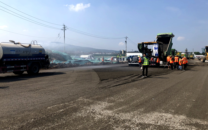 在項目部的精心準備下,7月24日早上,隨著現(xiàn)場施工人員指揮運輸車進入施工現(xiàn)場,水穩(wěn)混合料緩緩的倒入攤鋪輸送機內,標志著淄博市博山區(qū)沿河東路(白塔段)建設工程水泥穩(wěn)定碎石基層攤鋪工作順利展開。