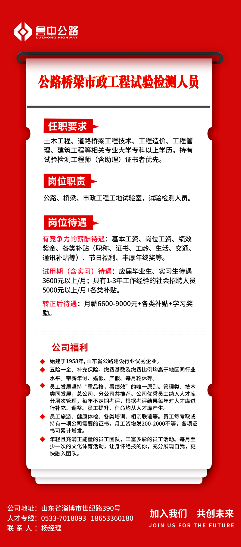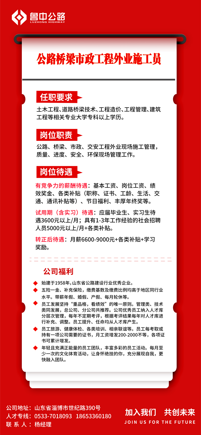 【抓作風(fēng) 創(chuàng)效益】魯中公路誠聘英才