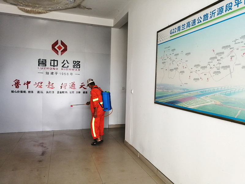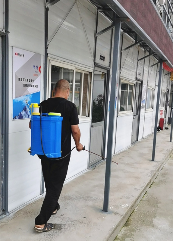 一公司對辦公區(qū)、宿舍區(qū)進行防疫消毒