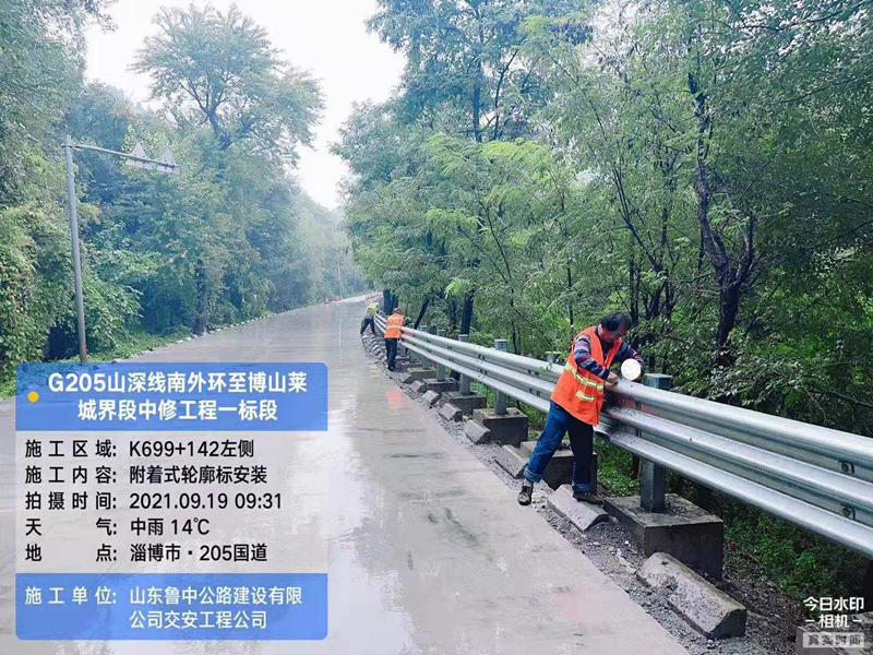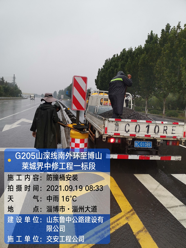 中秋將至,秋雨連綿,G205交安工程收官在即,全體員工齊心聚力,不懼風雨,堅守崗位。在G205上各施工點交安公司合理組織人員進行剩余工程量施工,護欄、標識牌、防撞桶、附著式輪廓標安裝等施工同步進行。