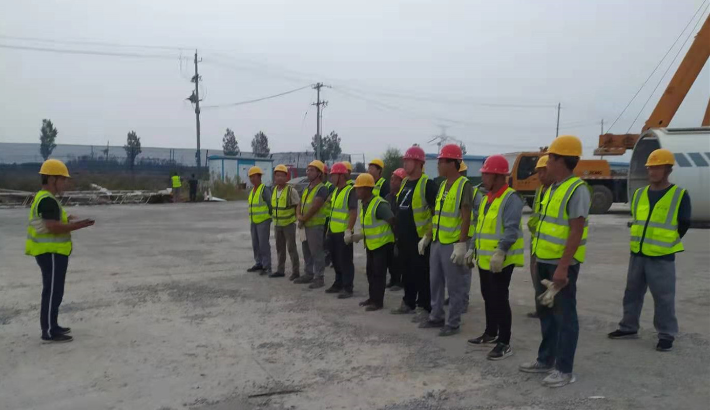 伴隨著一陣陣匆匆的腳步聲,人群中一聲令下,拆卸隊伍快速靠攏,開始了他們一天中的第一項(xiàng)工作內(nèi)容,班前安全交底。交底內(nèi)容繁雜多樣,涉及登高、電器等各個工序,為了有一個良好的交底效果,更為了不影響拆卸,待集體交底完成,確認(rèn)沒有問題后,再由有實(shí)際操作經(jīng)驗(yàn)的老師傅帶隊開始工作。偶爾覺得累了,找個安全的空地,就地休息,其他人員也很有默契地加快手中的工作,休息好了自動歸隊,爭取不輸給其他隊伍,各隊伍你追我趕,爭分奪秒,與時間賽跑,眼中只有工作,工地現(xiàn)場處處能看到工友們忙碌的背影。