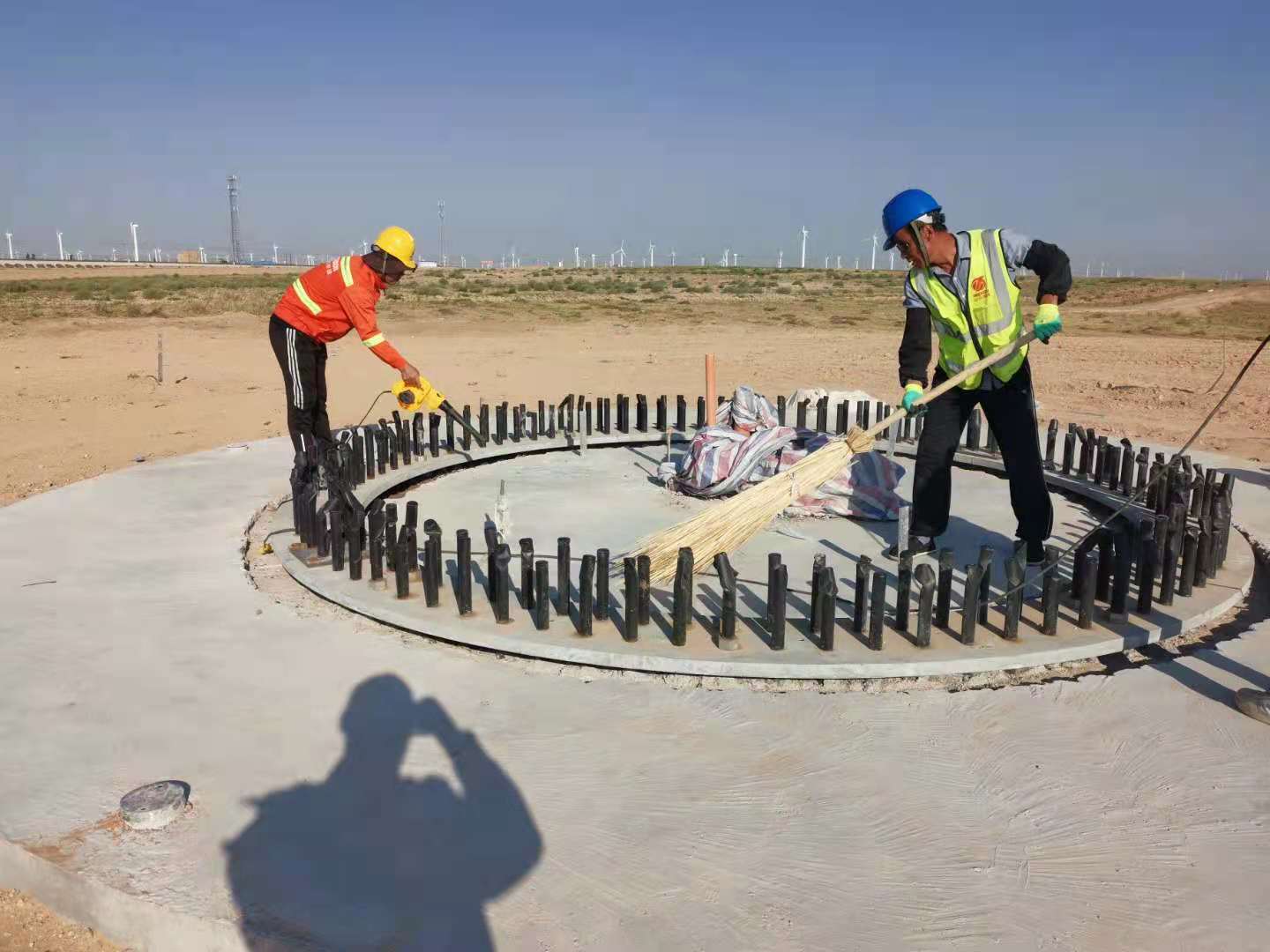 寧夏風(fēng)電項(xiàng)目對(duì)每個(gè)參建者都是新挑戰(zhàn),空曠的施工場(chǎng)地、強(qiáng)烈的紫外線照射、新的施工工藝等都為所有參建者上了一課,需要保持十二分的戰(zhàn)斗狀態(tài),做好每一細(xì)節(jié)的工作。在施工過程中我們嚴(yán)格按照施工圖及施工規(guī)范的要求進(jìn)行作業(yè),對(duì)施工現(xiàn)場(chǎng)遇到的各種問題,及時(shí)開會(huì)與項(xiàng)目其他人溝通確定方案予以解決,對(duì)自檢過程中發(fā)現(xiàn)的問題及時(shí)整改完善。