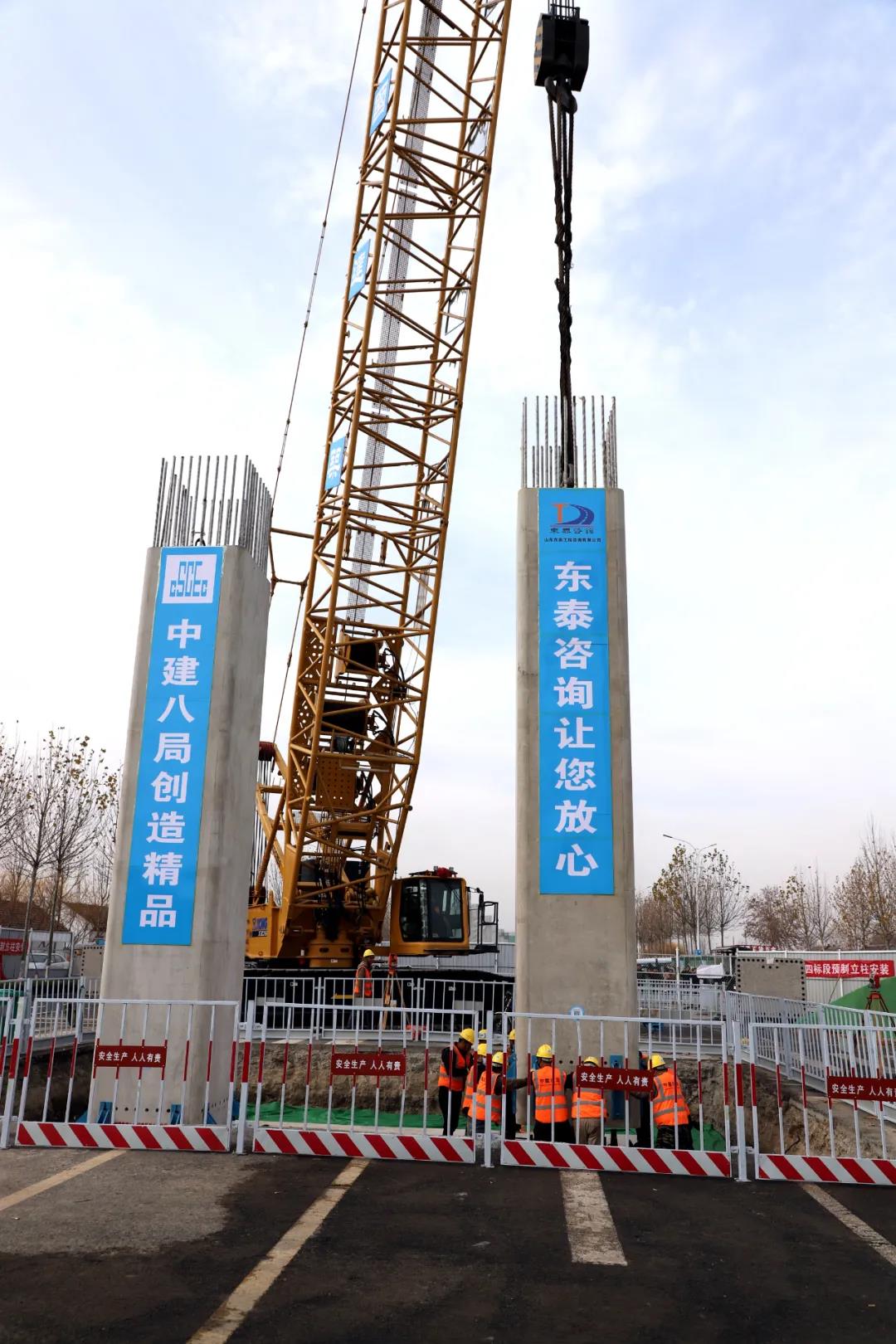 由淄博市城市資產(chǎn)運營有限公司投資建設(shè),山東東泰工程咨詢有限公司監(jiān)理的淄博市城市快速路網(wǎng)一期工程四標(biāo)段昌國路與寶山路互通立交項目首根預(yù)制裝配式立柱吊裝完成,項目建設(shè)正式邁入“預(yù)制拼裝”階段。