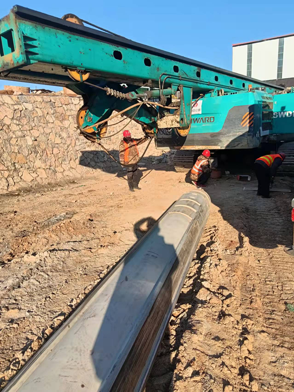 與此同時,旋挖鉆機(jī)組正緊鑼密鼓的進(jìn)行設(shè)備組裝,做好開鉆前的準(zhǔn)備工作。