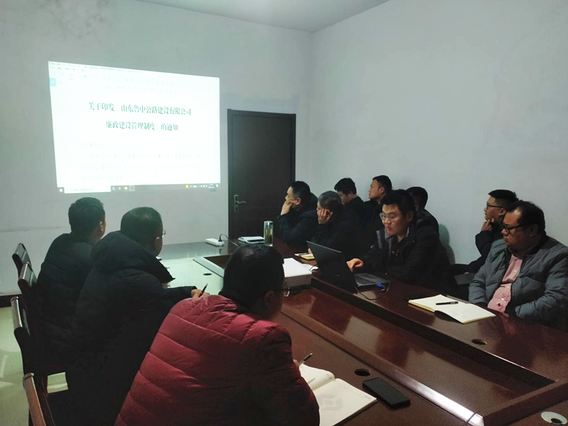 會議中項目總工對魯中公路政〔2022〕4號 文《關于印發(fā)〈山東魯中公路建設有限公司廉政建設管理制度〉的通知》的主要內容進行了宣貫學習,文件要求全體員工廉潔自律,忠于職守,禁止利用工作職權和職務上的影響謀取不正當利益而損害公司和他人利益,并制定了信訪舉報獎勵措施。