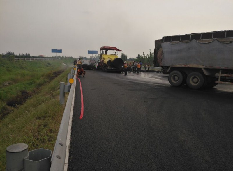 濱州工程項目上面層自2016年8月4日開始首件試驗段施工,8月28日開始全面攤鋪施工,歷時13天,共計15.2萬平方米。我濱州工程項目部承建的樞紐互通立交包含特大橋1座、大橋6座、中橋8座、小橋10座、涵洞8座及匝道8條。主線橋長1168.06米,共15聯(lián)46孔,匝道橋共7座,合計2159.34米,路面施工難度可想而知。面對緊張的工期安排,我濱州項目全體員工在公司以及各級領(lǐng)導(dǎo)的幫助下,以高昂的工作狀態(tài),專業(yè)的施工技術(shù),按質(zhì)按量的完成了路面施工任務(wù)。作為濟東高速全線最大的樞紐互通立交,我部各項施工進度和質(zhì)量控制,一直以來都是各級領(lǐng)導(dǎo)關(guān)注的焦點。為此,我部在不斷加強投入的同時,加強自身管理,嚴(yán)格質(zhì)量把控,加強現(xiàn)場管理,做到“嚴(yán)抓細(xì)管”。炎炎烈日,汗水浸透了衣衫,滾燙的瀝青流淌著我一線職工辛勞的汗水。在上面層順利完成后,我部收到了駐地辦、市辦、總監(jiān)辦等各級領(lǐng)導(dǎo)的祝賀信息,同時也對我部優(yōu)秀的工作表現(xiàn)提出表揚,要求各標(biāo)段虛心觀摩學(xué)習(xí)。