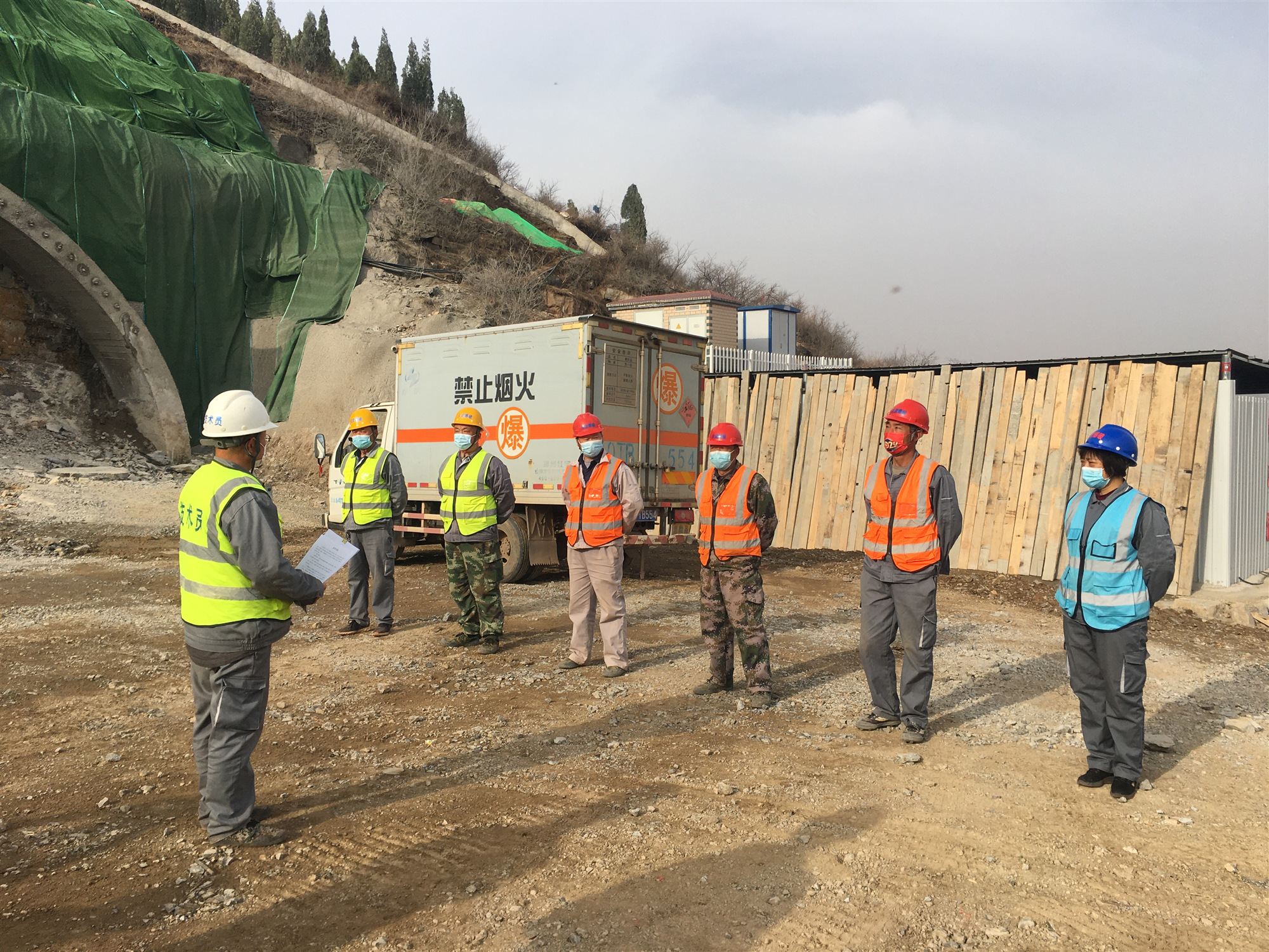 虎山隧道洞口爆破現(xiàn)場(chǎng)班前會(huì)