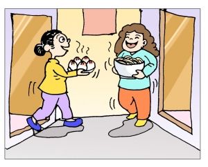 互送有無(wú),鄰居就像親人一樣。因?yàn)椴荒艹鲂^(qū)的門,小區(qū)里面誰(shuí)家缺少發(fā)面的酵母、做蛋糕的蛋糕胚、小寶寶的紙尿褲,在小區(qū)群里說(shuō)一聲,接著就有好鄰居給送到。昨天收到兩個(gè)鄰居相繼送來(lái)的黃花魚、大蝦仁、扇貝丁,說(shuō)是給孩子吃,這個(gè)時(shí)候的關(guān)心,一下子就鉆到心里,暖到心里。