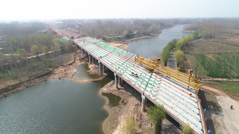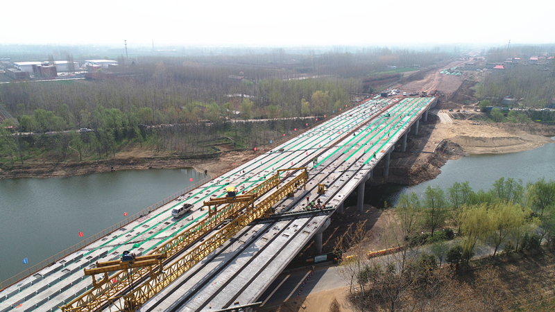 捷報(bào)——郯城G205項(xiàng)目白馬河大橋箱梁吊裝順利完成