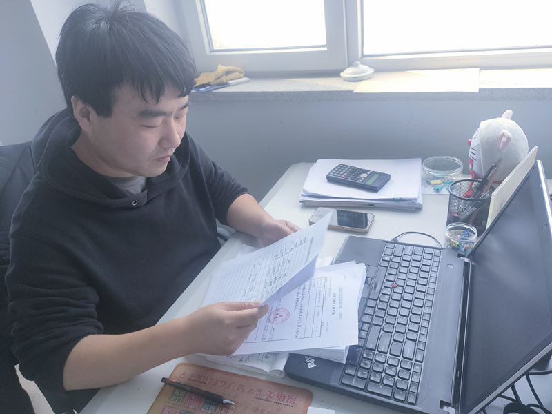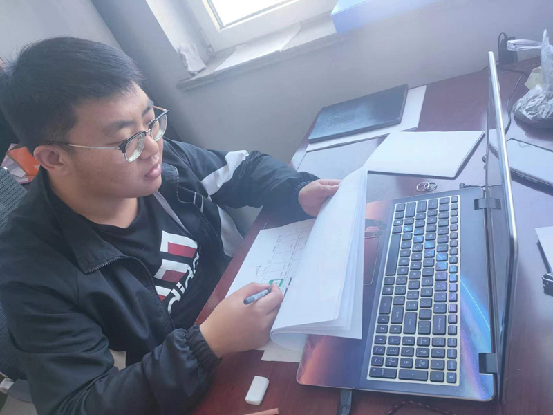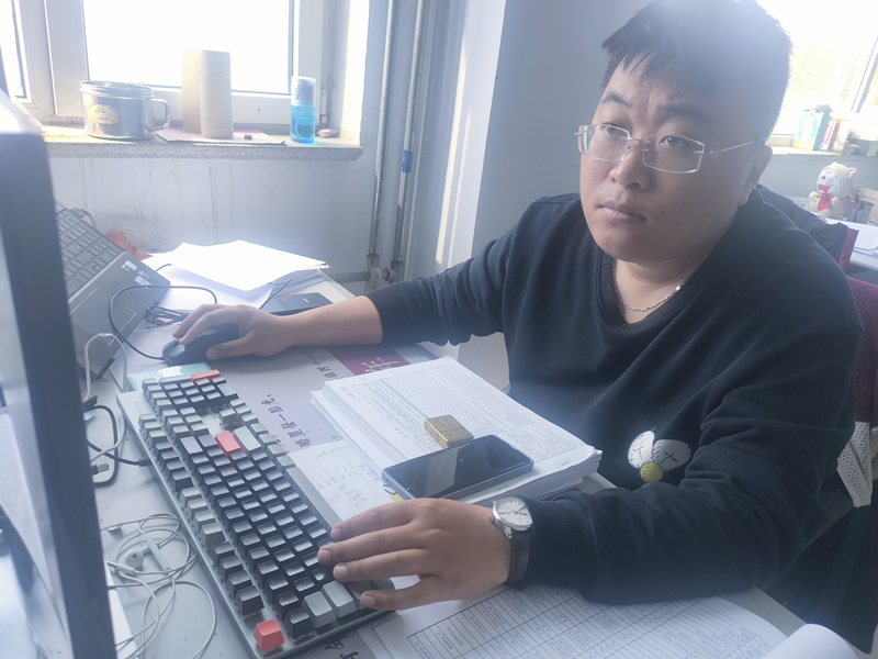 工程計劃部石志翔在做現(xiàn)場施工數(shù)據(jù)統(tǒng)計