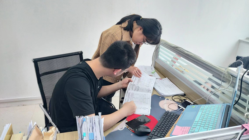 工程技術部李碰在對分項工程開工報審表進行檢查核實
