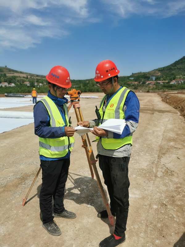 路基四工區(qū)西里互通A匝道路基施工(宋衍華與焦守強在核對測量數(shù)據(jù))