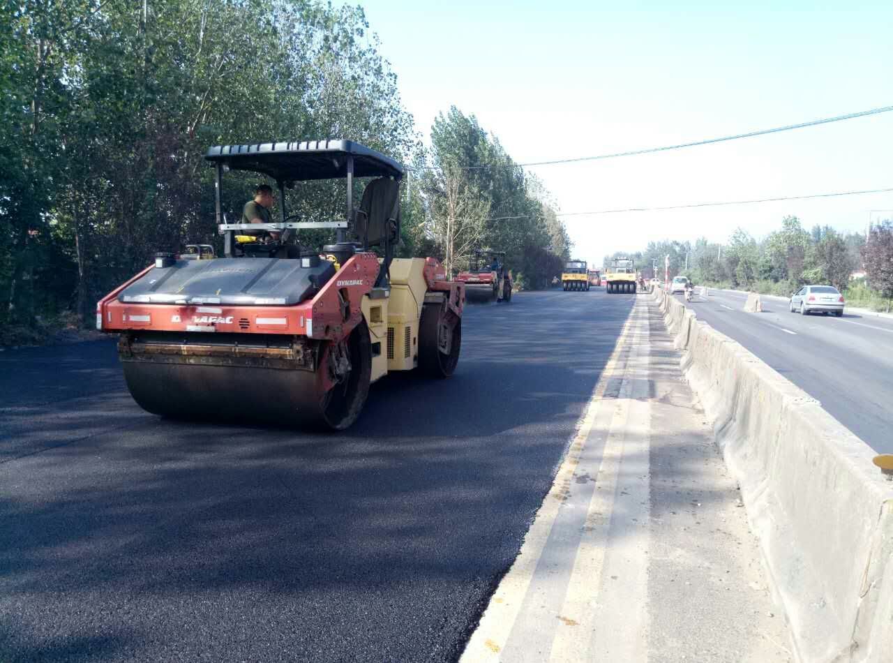 養(yǎng)護(hù)分公司九東路項目路面碾壓施工現(xiàn)場