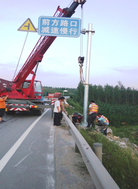 養(yǎng)護(hù)分公司煙臺交安項目標(biāo)志牌安裝現(xiàn)場