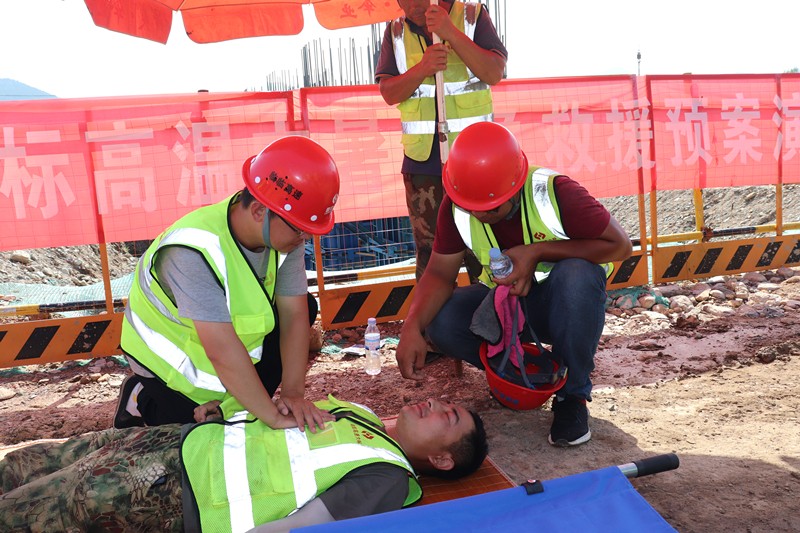 為進(jìn)一步提高項(xiàng)目部全體人員應(yīng)對(duì)汛期及高溫天氣突發(fā)事件的應(yīng)急救援能力,優(yōu)質(zhì)高效完成全年各項(xiàng)任務(wù)目標(biāo)、加快臨臨高速公路建設(shè)步伐,臨臨項(xiàng)目組織防洪防汛及防高溫中暑急救援預(yù)案演練。