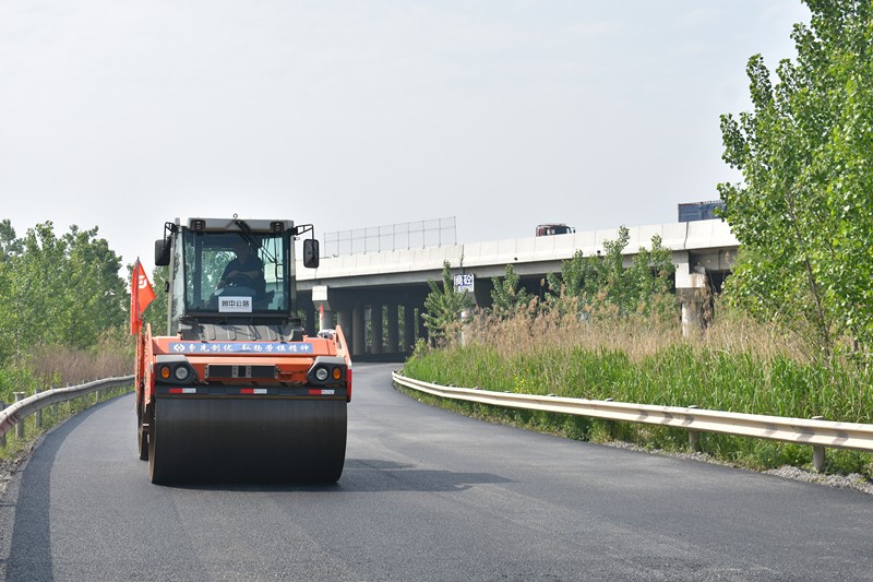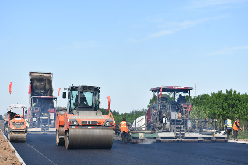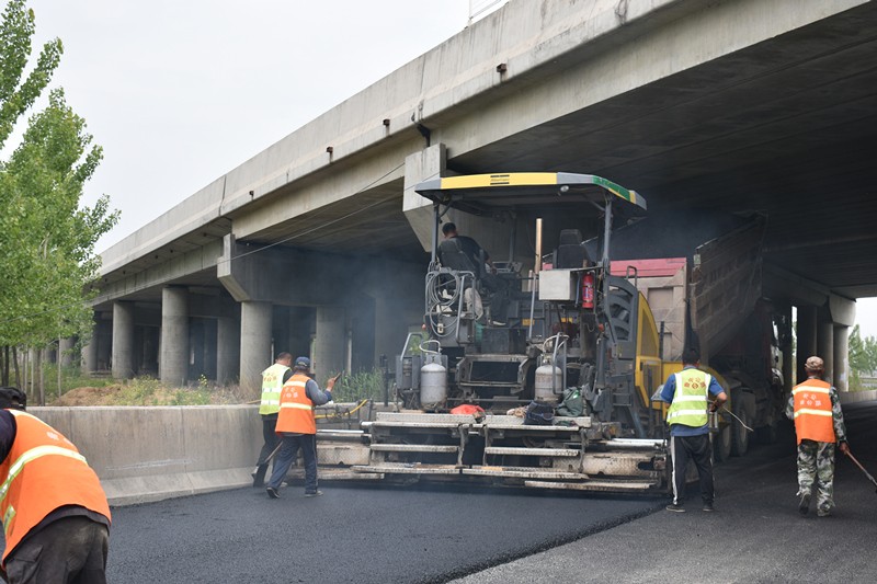 在京滬變更項目下穿劉瓦線施工現(xiàn)場,瀝青路面加高正在緊張的鋪設中,“剛出鍋”熱騰騰的瀝青料、現(xiàn)場施工人員肆意揮灑的汗水、來回碾壓的施工機械,用奮斗譜寫勞動的意義。
