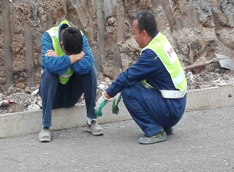 你看施工隊(duì)長(zhǎng)坐在模板上就睡著了、壓路機(jī)司機(jī)把車(chē)一停就進(jìn)入夢(mèng)鄉(xiāng)、攤鋪機(jī)司機(jī)連隔噪音的耳機(jī)都不用就睡過(guò)去了。這樣的事情每天在工地上都會(huì)出現(xiàn)??粗@些年輕的施工員和這支奮進(jìn)的施工隊(duì)伍,沒(méi)白沒(méi)黑的在施工現(xiàn)場(chǎng)拼著體能挑戰(zhàn)極限,往往早飯冷到午飯前了還沒(méi)時(shí)間吃,夜以繼日的推進(jìn)著施工進(jìn)度,有誰(shuí)能說(shuō)他們不是在戰(zhàn)斗?