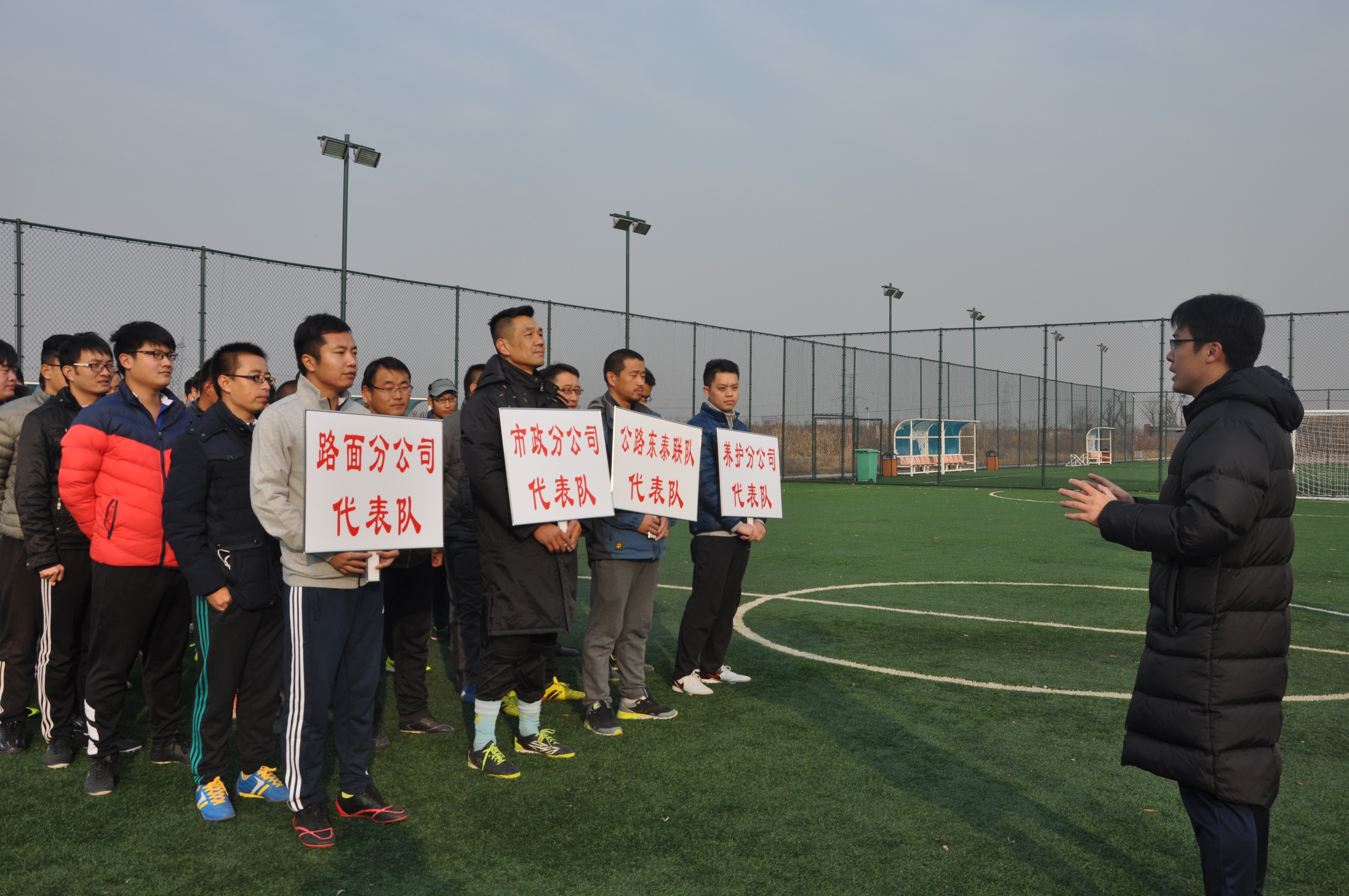 球員入場(chǎng),比賽開始——路面工程分公司代表隊(duì)對(duì)陣公路東泰聯(lián)隊(duì)代表隊(duì)