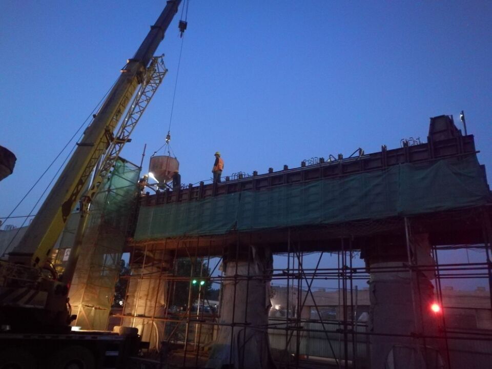 2017年5月24日凌晨,張博路分離立交開始了首片上跨張博路40m箱梁的吊裝施工,這是S102工程建設(shè)中具有里程碑意義的一夜。至此,張博路分離立交的建設(shè)進(jìn)入了新的快車道。負(fù)責(zé)張博路分離立交施工的是S102項(xiàng)目部橋隧分部,現(xiàn)場(chǎng)負(fù)責(zé)人周勇勇。這個(gè)團(tuán)隊(duì)?wèi){借其團(tuán)結(jié)、聽指揮的上行下效,贏得了項(xiàng)目部所有人員的贊賞。S294張博路是淄博市境內(nèi)的主要交通干線,車流量大,車速快,S102上跨張博路位置又處在淄川區(qū)雙楊鎮(zhèn)的重要路口,附近陶瓷廠、磨料場(chǎng)的生產(chǎn)規(guī)模大,平時(shí)可謂車水馬龍;跨鐵路施工歷來是讓人頭疼的難題,交涉、辦手續(xù)、再交涉、再辦手續(xù),可任你如何的發(fā)急發(fā)狠,一道歷史久遠(yuǎn)的張博鐵路就這樣靜靜的臥在我們面前。困難,不言而喻,為如期保質(zhì)、安全的完成工程施工,橋隧分部人員做了大量的現(xiàn)場(chǎng)調(diào)查、方案論證,交通組織設(shè)計(jì)再三修改,施工人員準(zhǔn)時(shí)在上、下班交通高峰期間指揮交通、警示行人。提起橋隧分部,項(xiàng)目經(jīng)理翟峰總是贊不絕口,“很久沒有看到這樣的團(tuán)隊(duì)了,負(fù)責(zé)人帶頭干,一家人跟著沖,有活力,有擔(dān)當(dāng)”,這是大家都有目共睹的,春節(jié)過后,橋隧分部每周的施工進(jìn)度全部都能按照計(jì)劃完成,計(jì)劃落實(shí)情況是項(xiàng)目部下屬各個(gè)單位中做的最好的,往返工地,也經(jīng)常能看到汗流浹背、衣衫濕透的周勇勇在指揮著橋下交通。5月20日、21日晚,為保證首片上跨張博路40m箱梁的順利進(jìn)行,橋隧分部連續(xù)兩個(gè)晚上進(jìn)行了張博路交通試封閉工作。凌晨時(shí)分,來往大車依然絡(luò)繹不絕,且絲毫沒有減速的意圖,現(xiàn)場(chǎng)負(fù)責(zé)人周勇勇用電話向橋下的兄弟們發(fā)出一份份清晰、準(zhǔn)確地指令,橋下的工作人員在接收到指令后隨時(shí)對(duì)交通的交通進(jìn)行疏導(dǎo),這是一群虎狼之師,敢打敢拼,從不言敗。