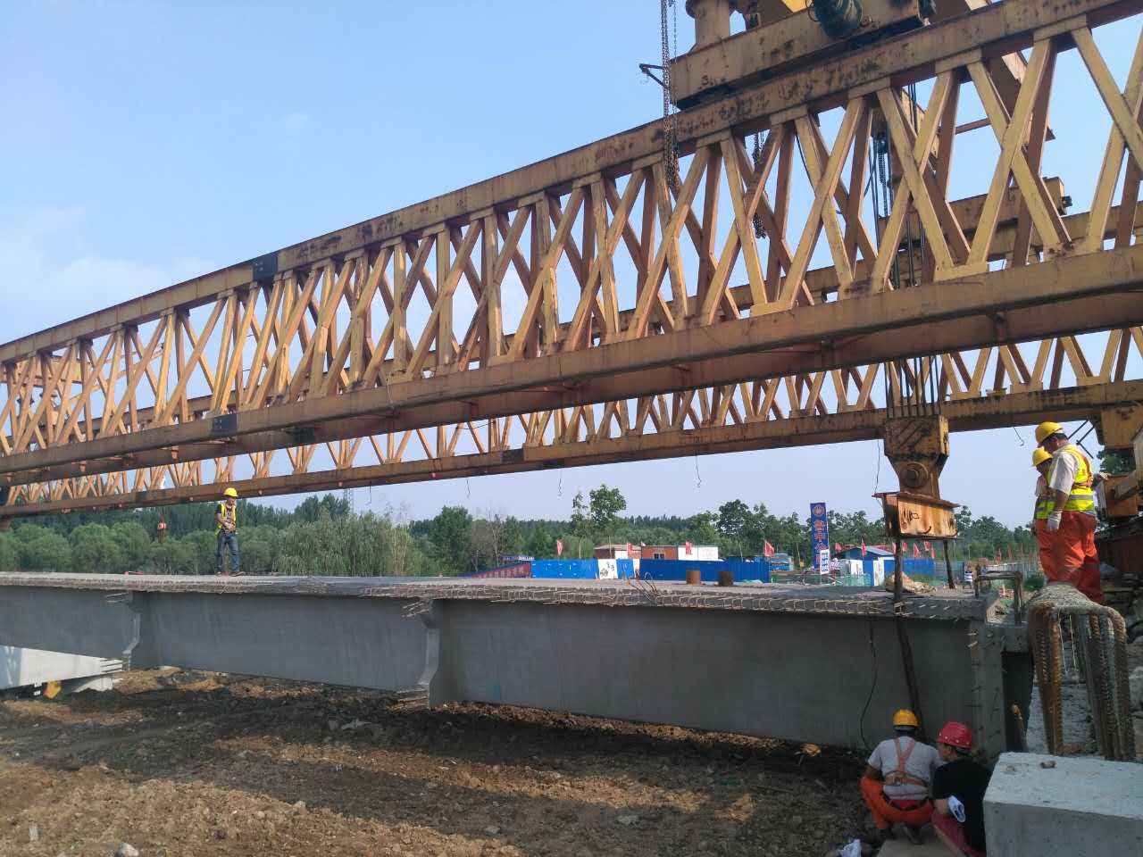 6月25日下午16時(shí)30分,隨著施工現(xiàn)場(chǎng)的鞭炮聲與陣陣歡呼聲,人民路延伸工程孝婦河橋第一塊梁板架設(shè)成功。人民路延伸工程孝婦河橋共需架設(shè)梁板84片,為方便經(jīng)濟(jì)開發(fā)區(qū)群眾出行,合理組織施工,搶抓有利時(shí)機(jī),在確保安全與質(zhì)量的前提下,力爭(zhēng)提前完成左幅橋梁通車目標(biāo)。