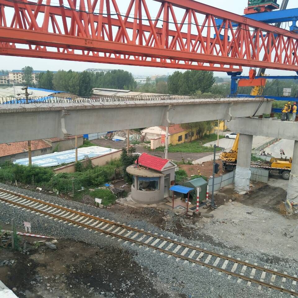 2017年7月5日,第18跨跨張博鐵路箱梁架設(shè)開始??玷F路施工我項(xiàng)目部是第一次接觸,再加上鐵路協(xié)調(diào)難度比較大,所以從年后就開始為跨鐵路施工做準(zhǔn)備,方案評(píng)審、各鐵路設(shè)備單位安全協(xié)議簽訂、路局施工計(jì)劃下達(dá)、各配合單位的配合通知單簽訂,一套程序走下來(lái)就得2-3個(gè)月,但不怕困難、迎難而上的我們硬是在不懈的努力中啃下了這塊硬骨頭。在經(jīng)歷5個(gè)天窗點(diǎn),第17、18跨箱梁架設(shè)完畢,這也代表著張博路分離立交橋所有箱梁架設(shè)完畢。