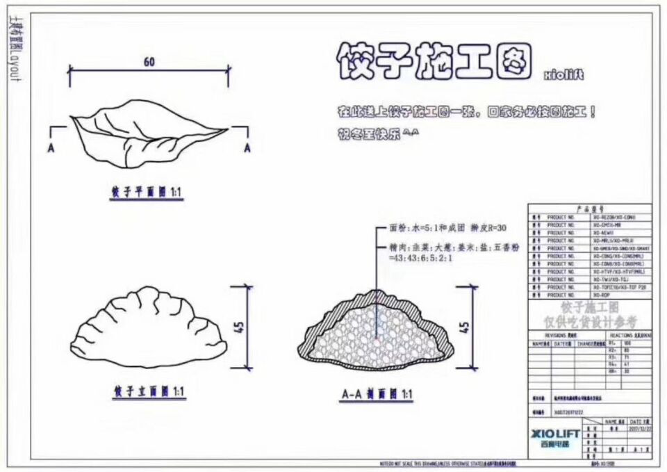 吃著熱氣騰騰的水餃,看著一個(gè)個(gè)平時(shí)都在一起工作的兄弟姊妹,難得大家有機(jī)會(huì)坐在一起,共同動(dòng)手參與飲食制作,也難得有時(shí)間坐在一起吃飯聊天。大家平時(shí)都是按圖施工,按表結(jié)算,也不能給大家改了這個(gè)好習(xí)慣,來呈上一張施工圖,都回家按圖作業(yè)吧。這個(gè)冬至大家共同參與包餃子是不是有種一家人在一起團(tuán)聚的感覺!