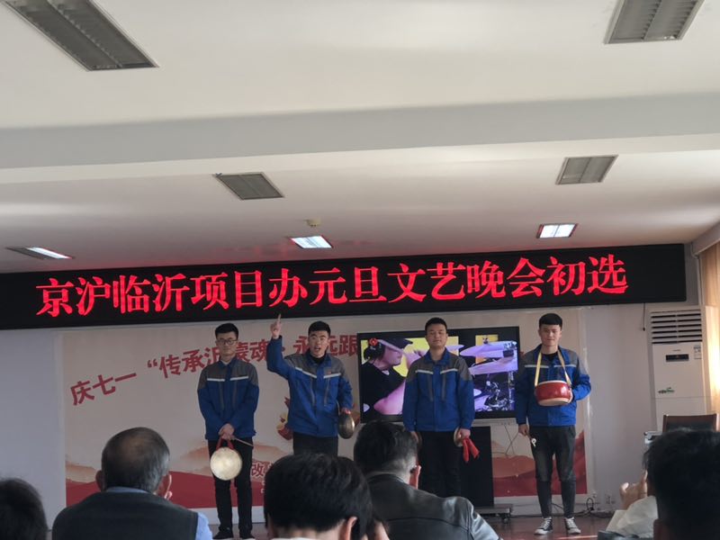 G2項目部在接到通知的第一時間,領(lǐng)導高度重視,組織召開動員會,把文藝匯演作為一項重要任務來抓,動員全項目熱愛文藝熱愛表演的員工積極報名,并將對入圍節(jié)目給予獎勵,在原廣大一線員工中間激起了極大反響。經(jīng)過層層篩選,最終確定歌曲《光明》、三句半《京滬頌》兩個文藝節(jié)目前去參選。