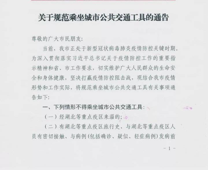 淄博三部門聯(lián)合下文!6種情形不得乘坐公共交通工具