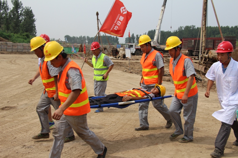 6月30日上午,馬南路孝婦河橋梁項目部在孝婦河橋梁施工現(xiàn)場舉行了一次防洪防汛應(yīng)急救援演練。