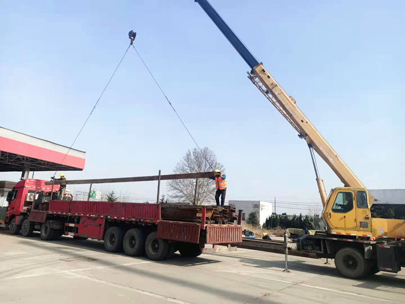 預(yù)制場(chǎng)工字鋼和龍門道軌進(jìn)場(chǎng)卸車安裝