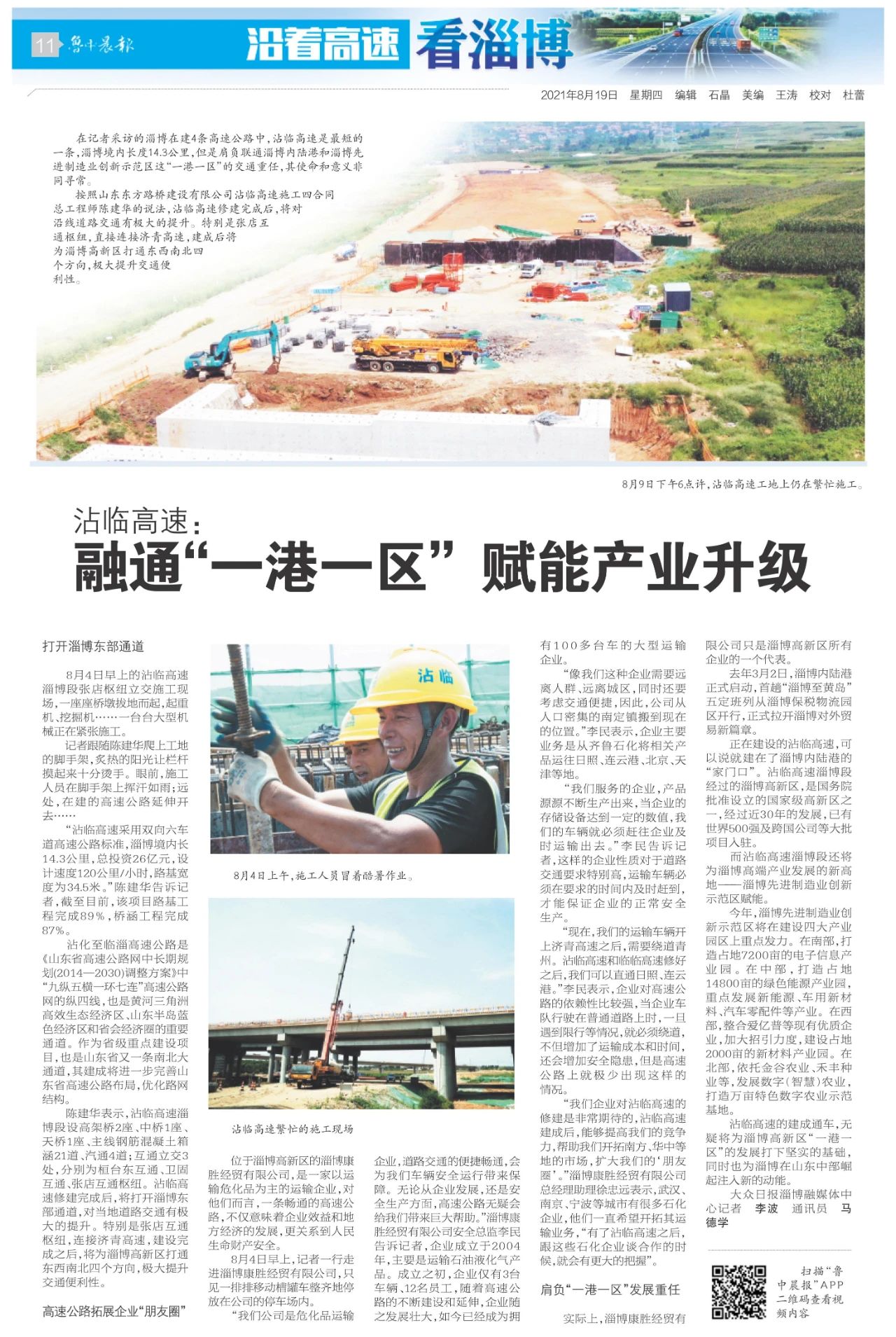 “我們企業(yè)對沾臨高速的修建是非常期待的,沾臨高速建成后,能夠提高我們的競爭力,幫助我們開拓南方、華中等地的市場,擴(kuò)大我們的‘朋友圈’。”淄博康勝經(jīng)貿(mào)有限公司總經(jīng)理助理徐忠遠(yuǎn)表示,武漢、南京、寧波等城市有很多石化企業(yè),他們一直希望開拓其運(yùn)輸業(yè)務(wù),“有了沾臨高速之后,跟這些石化企業(yè)談合作的時(shí)候,就會有更大的把握”。
