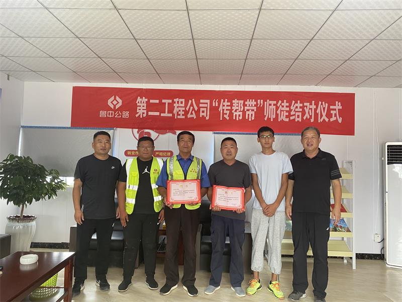 2021年9月9日,在此教師節(jié)來臨之際,山東魯中公路建設(shè)有限公司第二工程公司在郯城G205項(xiàng)目黨建室舉行了第二工程公司“傳幫帶”師徒結(jié)對儀式?;顒又荚趲椭聠T工能夠快速融入集體、增強(qiáng)本領(lǐng),通過“傳、幫、帶”的形式盡快提升新員工自身工作能力,錘煉一支能打、能戰(zhàn)、能抗的工程建設(shè)隊(duì)伍。
