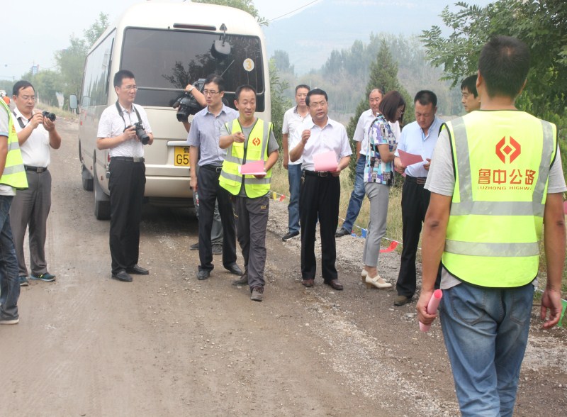 2016年9月6日,沂源縣人大、交通局等領導視察我養(yǎng)護分公司九東路工地,九東路項目經理李眾、項目總工任衍峰陪同檢查。