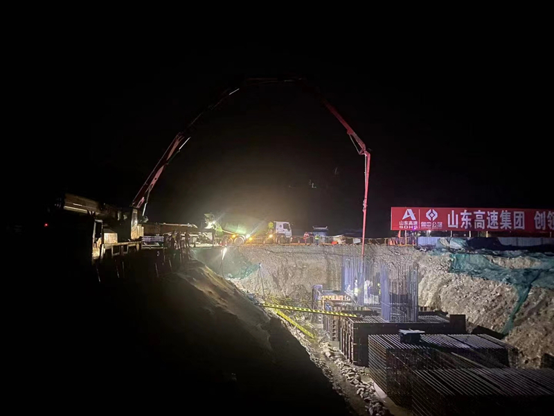 泵車連續(xù)澆筑混凝土近5小時(shí),臨臨高速六標(biāo)K107+649沂河大橋8#右幅承臺(tái)于2022年6月9日0時(shí)30分澆筑完成。沂河大橋自開工以來,橋涵五工區(qū)廣大建設(shè)者積極推進(jìn)各項(xiàng)工程,目前進(jìn)展順利。