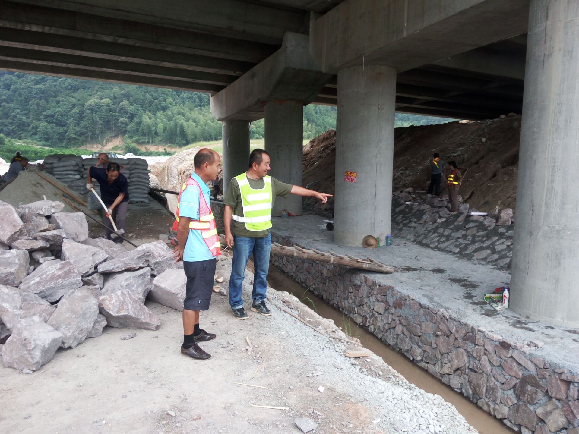 基礎(chǔ)分公司江西項目部質(zhì)檢負(fù)責(zé)人金新平檢查橋下護(hù)坡施工