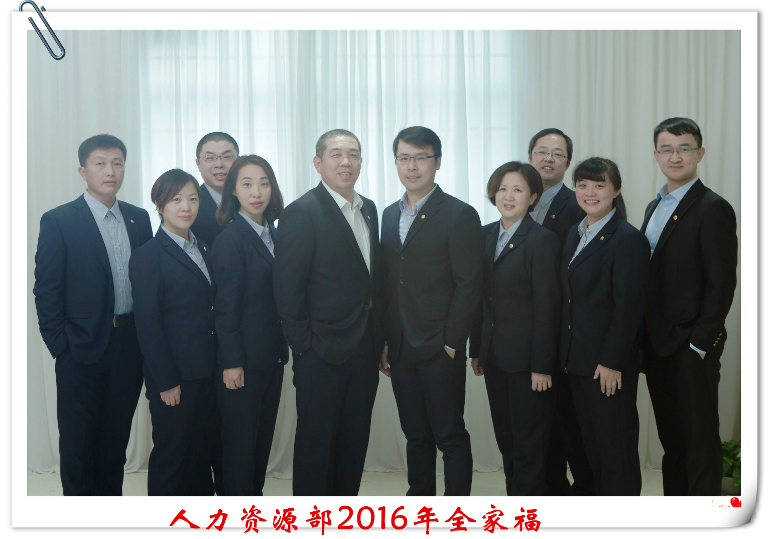 單絲不成線(xiàn),獨(dú)木不成林,家和才能萬(wàn)事興。人資部是我們的小家,魯中公路是我們的大家。當(dāng)攝影鏡頭對(duì)準(zhǔn)我們,拍下這張幸福的全家福的瞬間,我們笑了,發(fā)自?xún)?nèi)心的笑了;我們驕傲,我們驕傲現(xiàn)在擁有的這一切;我們幸福,我們更愿意通過(guò)努力把這份幸福無(wú)限的延長(zhǎng)。嶄新的一年就要來(lái)臨了,我們每個(gè)人心中都充滿(mǎn)了期待,來(lái)時(shí)的路我們相扶相伴,未來(lái)的路我們?nèi)詴?huì)牽手相行,我們相信,在2017年的工作中,我們?nèi)肆Y源部將會(huì)一如既往的團(tuán)結(jié)向前,進(jìn)一步解放思路,放開(kāi)手腳,更加靈活、高效、自動(dòng)的去做好每一項(xiàng)工作。家和萬(wàn)事興,心齊泰山移,2017,人資部加油!2017,魯中公路更上一層樓!