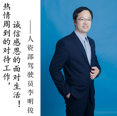 嘮叨又熱心,細(xì)心又豁達(dá)的李明俊。李明俊參加工作22年,開(kāi)了22年的車(chē),是個(gè)地道的老司機(jī)。坐他車(chē)出去,悶了他用廣饒?jiān)捙隳懔牧奶?,困了可以安心睡自己的,?duì)他可以放下一百個(gè)心。除了人資部的司機(jī),他還負(fù)責(zé)部分日常辦公用品、飲用水的采購(gòu)與發(fā)放。每天他忙得就像個(gè)陀螺似的轉(zhuǎn)來(lái)轉(zhuǎn)去,偶爾得一點(diǎn)閑空,他總是裝得很有品味似的,給自己泡上一壺茶,卻往往是茶沒(méi)泡好人卻忙去了,等人回來(lái)了茶又涼了,讓他那點(diǎn)雅致的小心思愣是沒(méi)有用武之地。無(wú)論多么瑣碎的工作,都要用心對(duì)待,是李明俊帶給我們的工作態(tài)度。